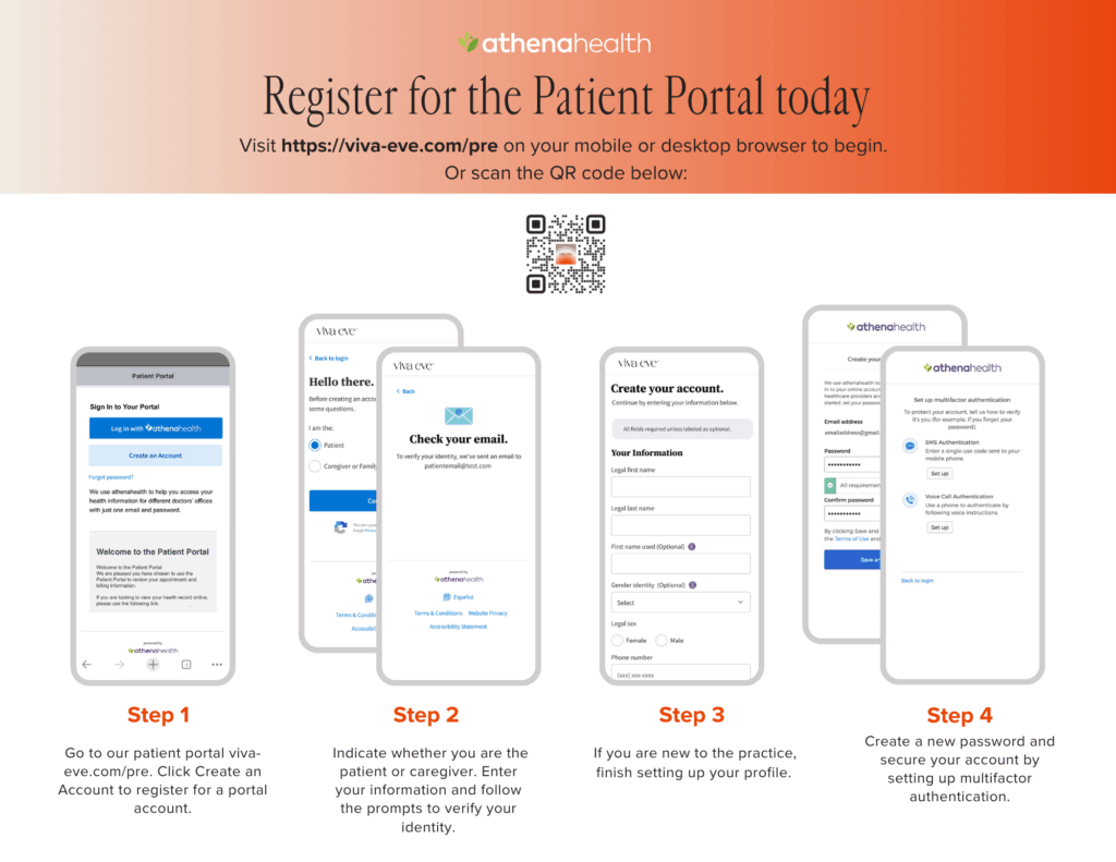 Your invitation to access the Viva Eve Patient Portal is on its way. In the meantime, you can get a head start by registering now at viva-eve.com/pre.